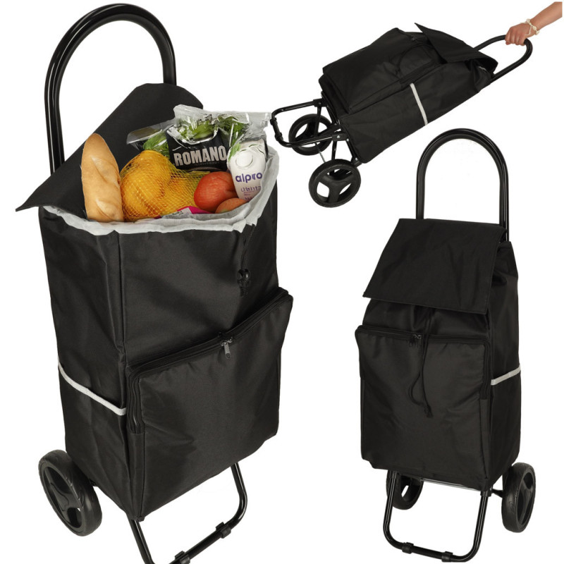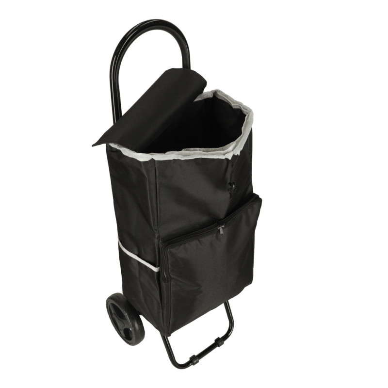 Taška na kolieskach so sťahovacou šnúrkou je ideálna na prenášanie nákupov. Má veľké vrecko s termálnou podšívkou a bočné vrecká na nápoje, ktoré výrazne uľahčujú balenie a prepravu potravín.