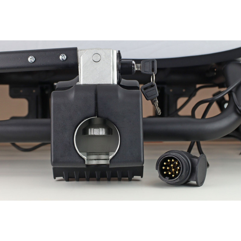 Možno naložiť 2 E-bicykle upevnené na 50 mm ťažnú guľu, max. zaťaženie 60kg