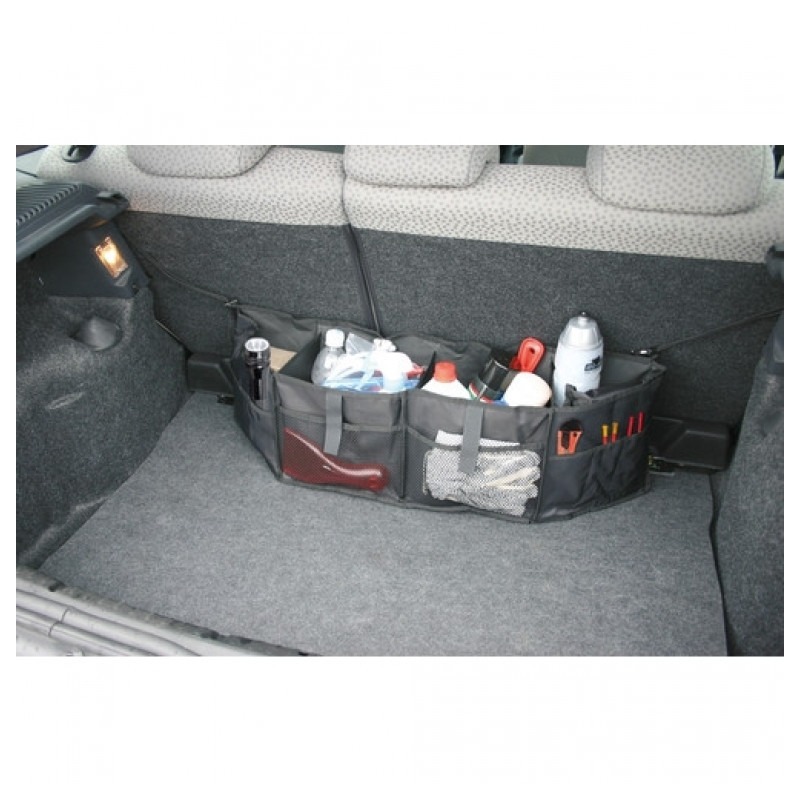 Odkladací vak do auta má mnohostranné využitie odkladania rôznych predmetov úložného priestoru - lekárnička, lano, baterka, kľúče, atď… Montuje sa na zadnú stranu zadného sedadla pomocou popruhov.
