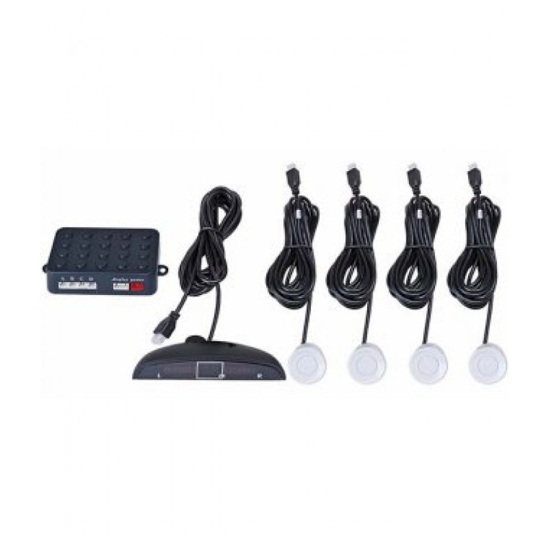 Asistent cúvania so 4 senzormi pre ľahšie a bezpečnejšie parkovanie. Farba senzorov biela. Systém sa aktivuje zaradením spiatočky.