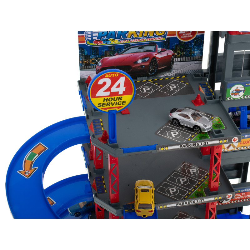 Veľká multifunkčná garáž s výťahom, čerpacou stanicou, umyvárňou a pristávacou plochou pre vrtuľník je snom každého malého automobilového nadšenca!
