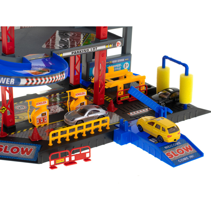 Parkovacia garáž dvojpodlažná čerpacia stanica umývanie áut. Vek: 3+