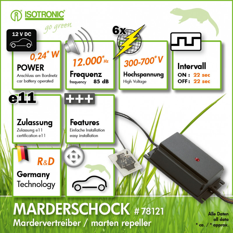 Kontaktné doštičky sú vždy nainštalované v pároch do motorového priestoru, takže pri súčasnom kontakte s obidvomi trombocytmi je kuna nárazovo šokovaná. Vysokonapäťové platne sú namontované v motorovom priestore tak, aby kune, ktorá vnikla do tohto priestoru a dotkla sa jednej z platní, spôsobí bolestivý, ale nie smrteľný úraz elektrickým prúdom. V čase potrebnom na opätovné nabitie kondenzátora má zviera šancu utiecť z motorového priestoru bez toho, aby bolo usmrtené, a to kvôli trvalej kontrakcii svalov spôsobenej dlhodobým kontaktom s vysokým napätím. Ako tretia odstrašujúca funkcia je LED svetlo, ktorá trikrát blikne, keď je spustené vysoké napätie, čo vydesí a odpudzuje votrelcov.