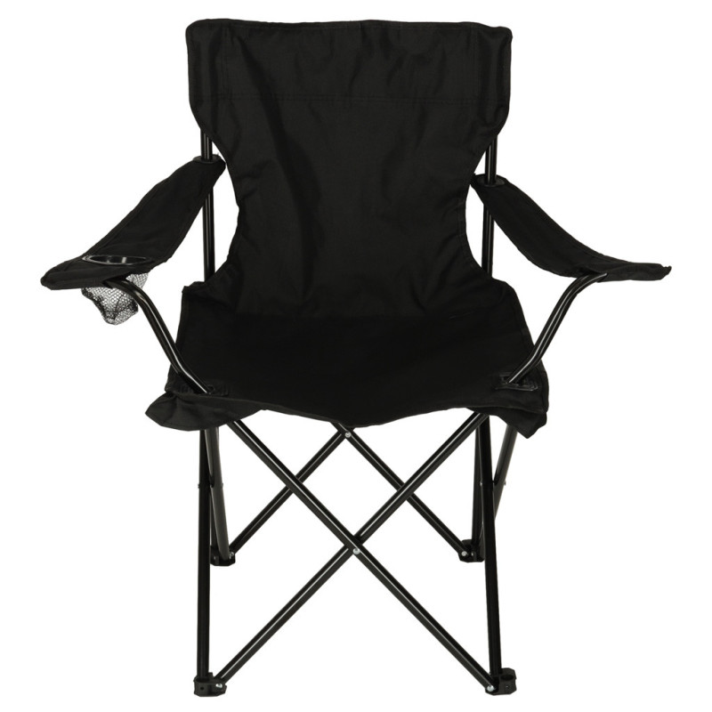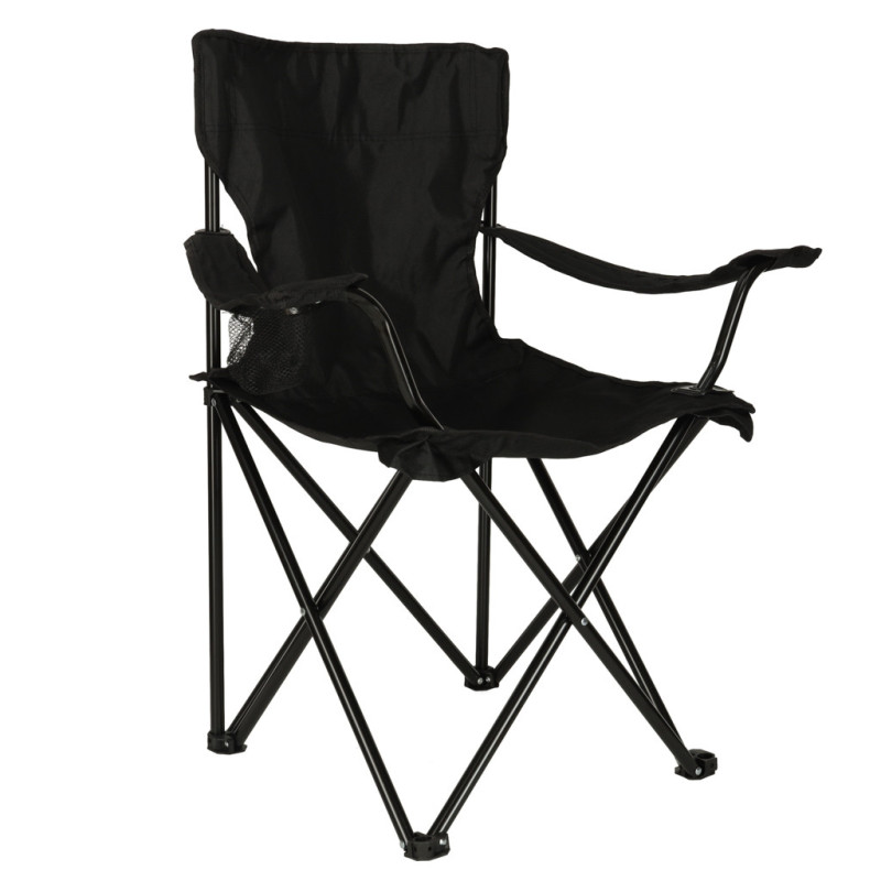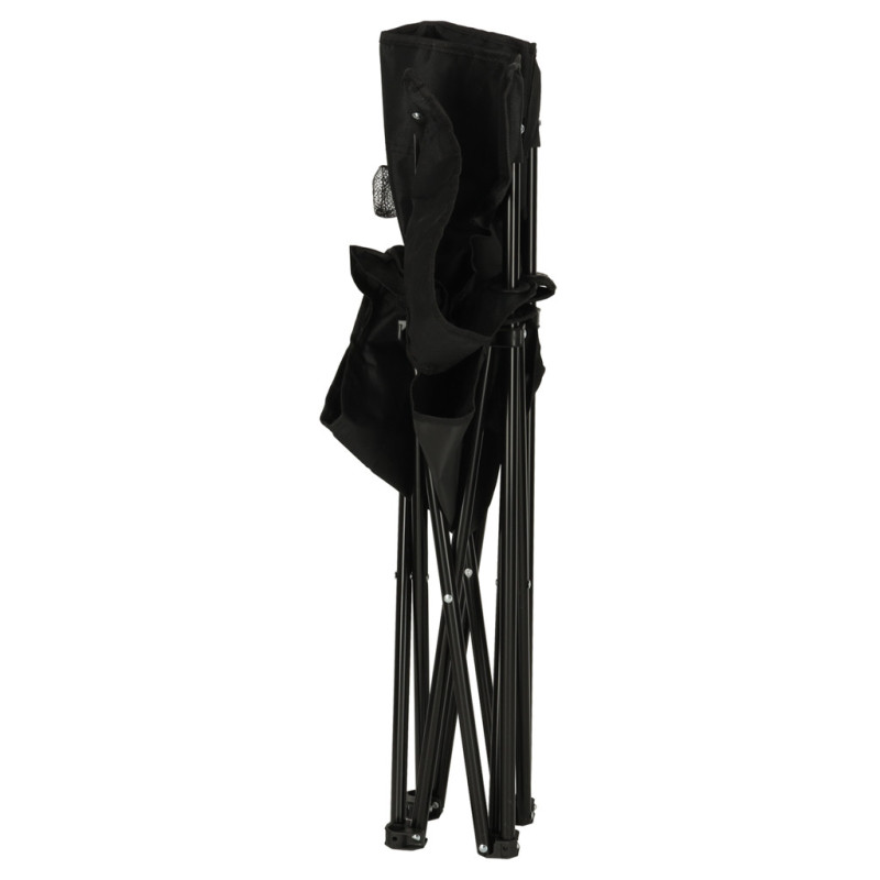 Plážové skladacie rybárske kreslo LUARO- čierne. S držiakom na nápoje.