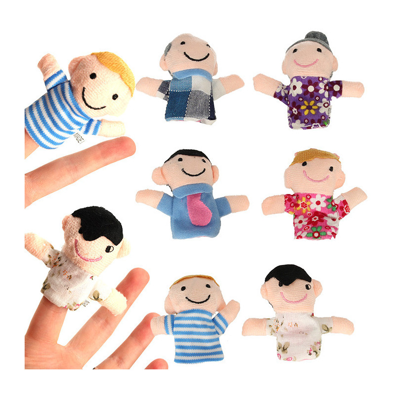 Šesť rôznofarebných prstových maňušiek - rodina: otec, mama, babička, dedko, dcéra, syn.