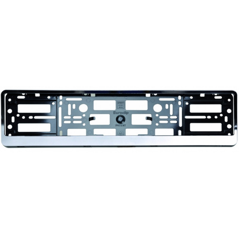 Plastová podložka pod tabuľku registračnej značky (RZ) alebo evidenčnej značky (ŠPZ) bežných rozmerov. Chrómová lišta podčiarkuje celkový vzhľad rámčeka.