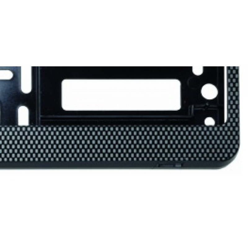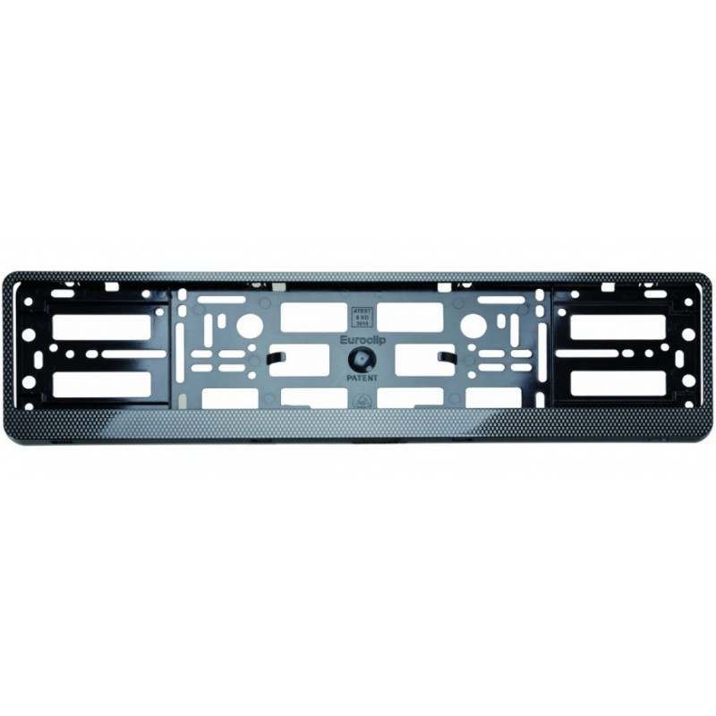 Plastová podložka pod tabuľku registračnej značky (RZ) alebo evidenčnej značky (ŠPZ) bežných rozmerov. Karbónová lišta podčiarkuje celkový vzhľad rámčeka.