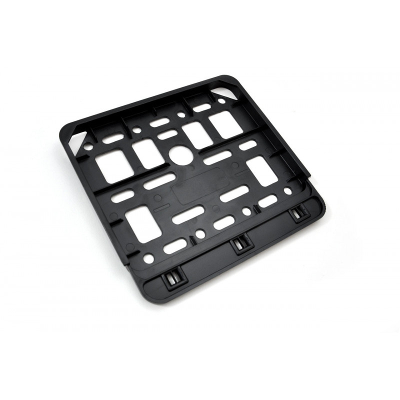 Podložka s pružného ohybného plastu pod štátnu poznávaciu značku alebo tabuľku registračnej značky, otvory pre univerzálnu montáž. Maximálna veľkosť poznávacej značky: 11,4 x 14 cm