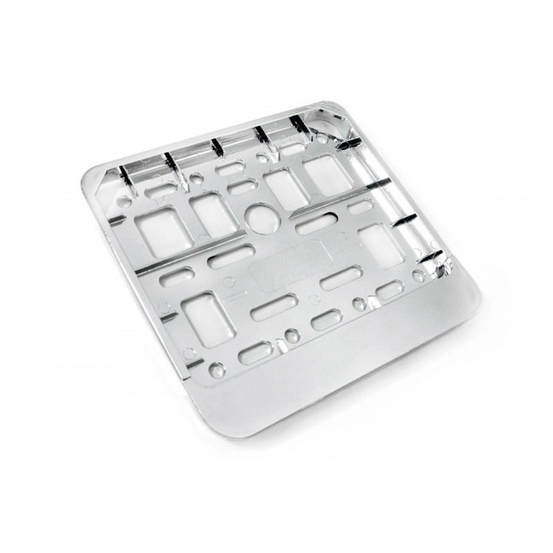 Podložka s pružného ohybného plastu pod štátnu poznávaciu značku alebo tabuľku registračnej značky, otvory pre univerzálnu montáž. Maximálna veľkosť poznávacej značky: 11,4 x 14cm