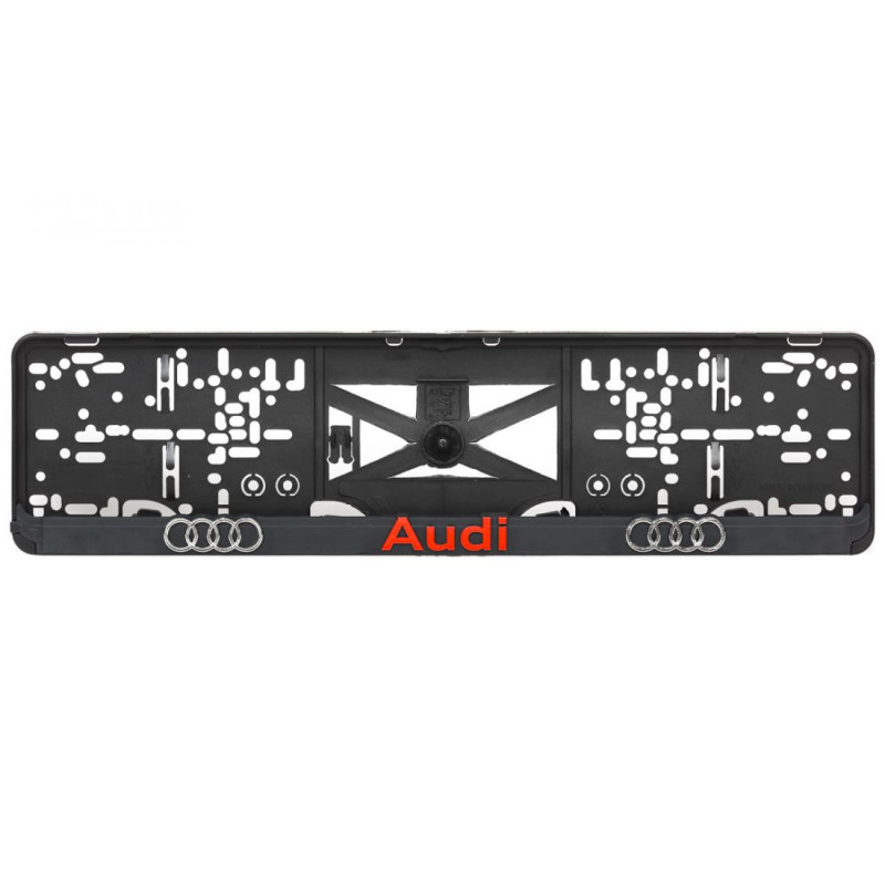 Podložka pod ŠPZ s 3D červeným nápisom a chrómovým logom značky Audi