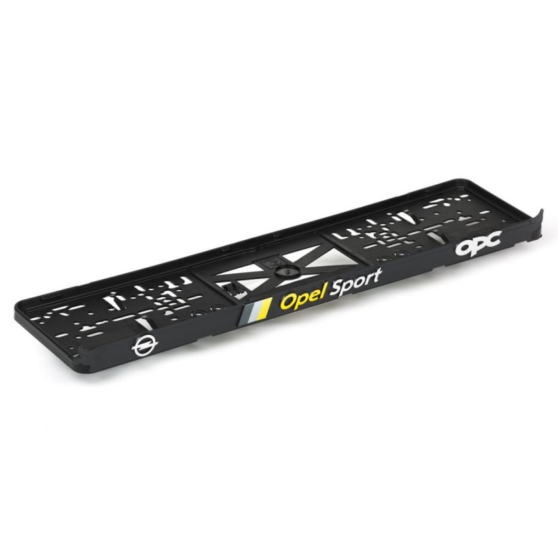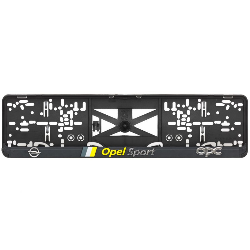 Podložka pod ŠPZ s 3D chrómovým a žltým nápisom a farebným logom značky OPEL SPORT