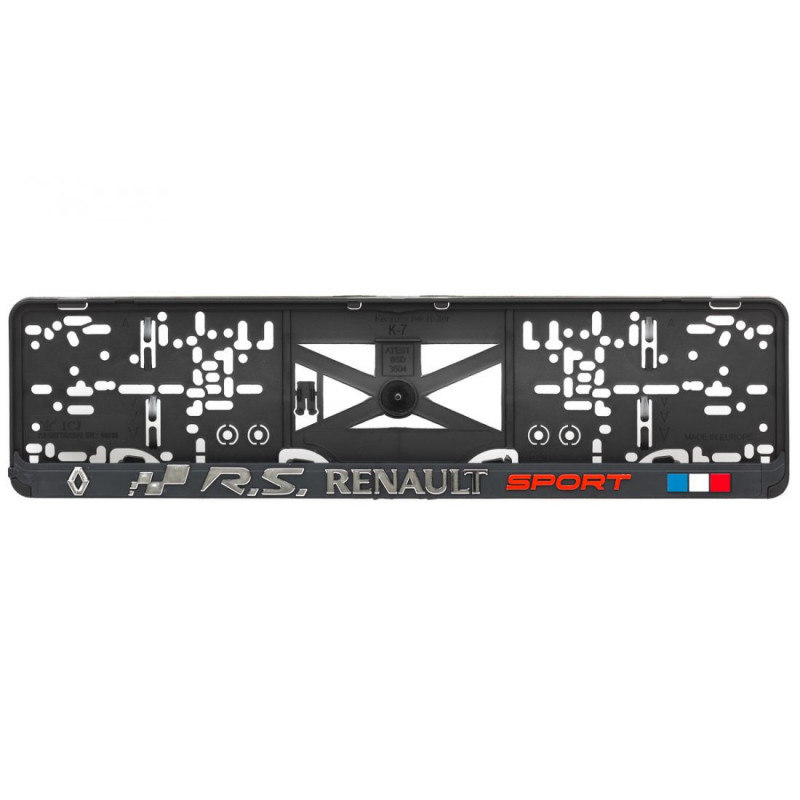 Podložka pod ŠPZ s 3D chrómovým a červeným nápisom a farebným logom značky RENAULT SPORT