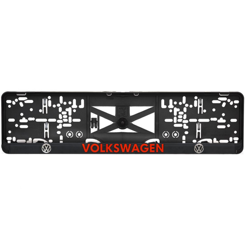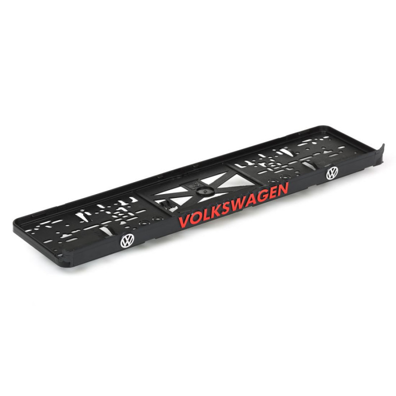 Podložka pod ŠPZ s 3D červeným nápisom a chrómovým logom značky VOLKSWAGEN