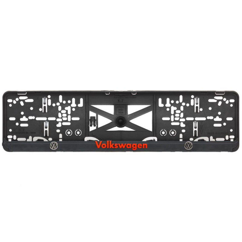 Podložka pod ŠPZ s 3D červeným nápisom a chrómovým logom značky VOLKSWAGEN