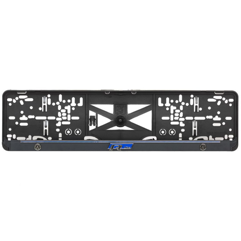 Podložka pod ŠPZ s 3D modrým nápisom a chrómovým logom značky VW R LINE