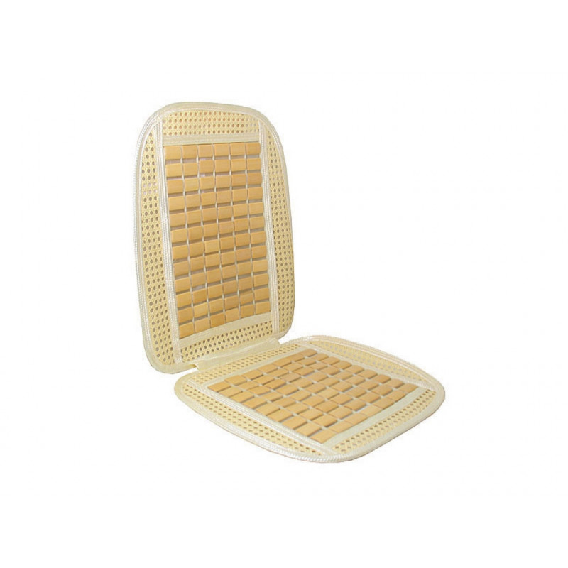 Poťah na sedadlo automobilu v bambusovom prevedení, univerzálne upevnenie na väčšinu bežne používaných sedadiel. Poťah sedadla z bambusových častí s textilným lemom., ktoré príjemne masírujú telo, podporujú krvný obeh, pomáhajú znižovať únavu i bolestivosť chrbta a umožňujú prúdenie vzduchu medzi sedadlom a chrbtom vodiča. Ak poťah na sedadlo iba položíte (bez pripevnenie na operadlovú časť sedadla), je možné poťah použiť aj na sedadlá so zabudovaným bočným airbagom priamo v operadle.
