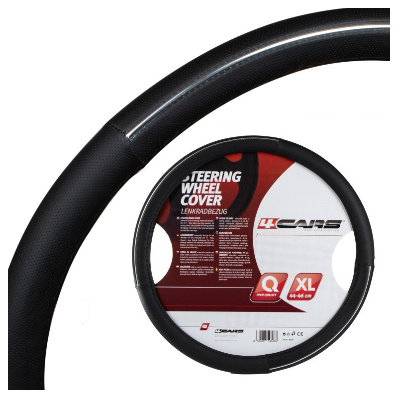 Univerzálny poťah na volant automobilu v elegantnom čiernom farebnom prevedení je určený na ochranu volantu vozidla pred znečistením, denným opotrebovaním a zabraňuje šmýkaniu rúk na volante, čím zvyšuje vašu bezpečnosť. Je vyrobený z kvalitného materiálu, ktorý je veľmi príjemný na dotyk a tým zvyšuje váš komfort počas jazdy. Poťah sa jednoducho udržuje v čistote a vyznačuje sa tiež nenáročnou montážou. Poťah je možné použiť na volanty s priemerom 44 až 46 centimetrov.
