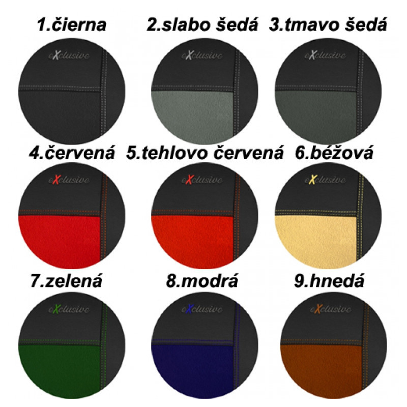 Zadné poťahy sedadiel: sedacia časť delená 2:1 + opieracia časť delená 2:1 (menšia časť za vodičom)
