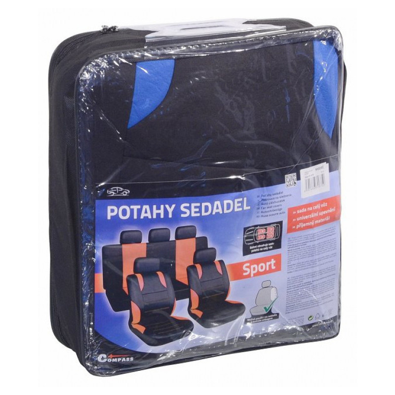Poťahy sedadiel sada 9ks SPORT modré AIRBAG