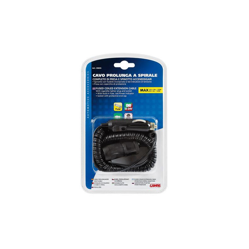 Predlžovací kábel cigaretového zapaľovača 4 m Rozmery: VSTUP ---> 12/24 V - standard VÝSTUP ----> 2 x 12/24 V - standard - 10 A max KÁBEL ---> 400 cm