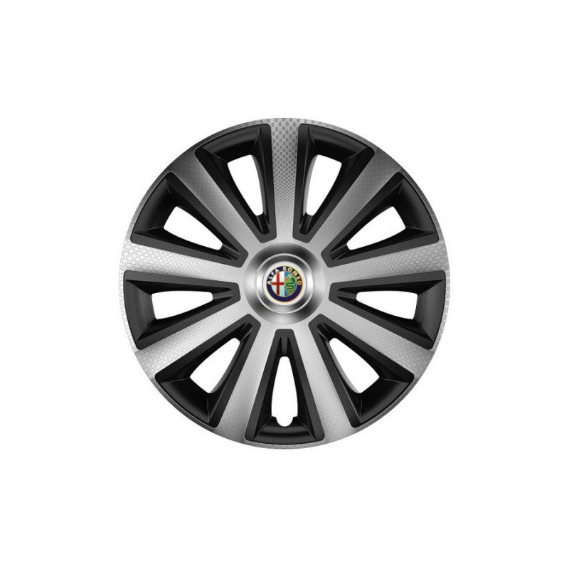 Puklice 14 Aviator carbon silver&black pre Alfa Romeo na ocelové disky. Pre kolesá o veľkosti R14 so živicovými samolepkami Alfa Romeo.Címzett :