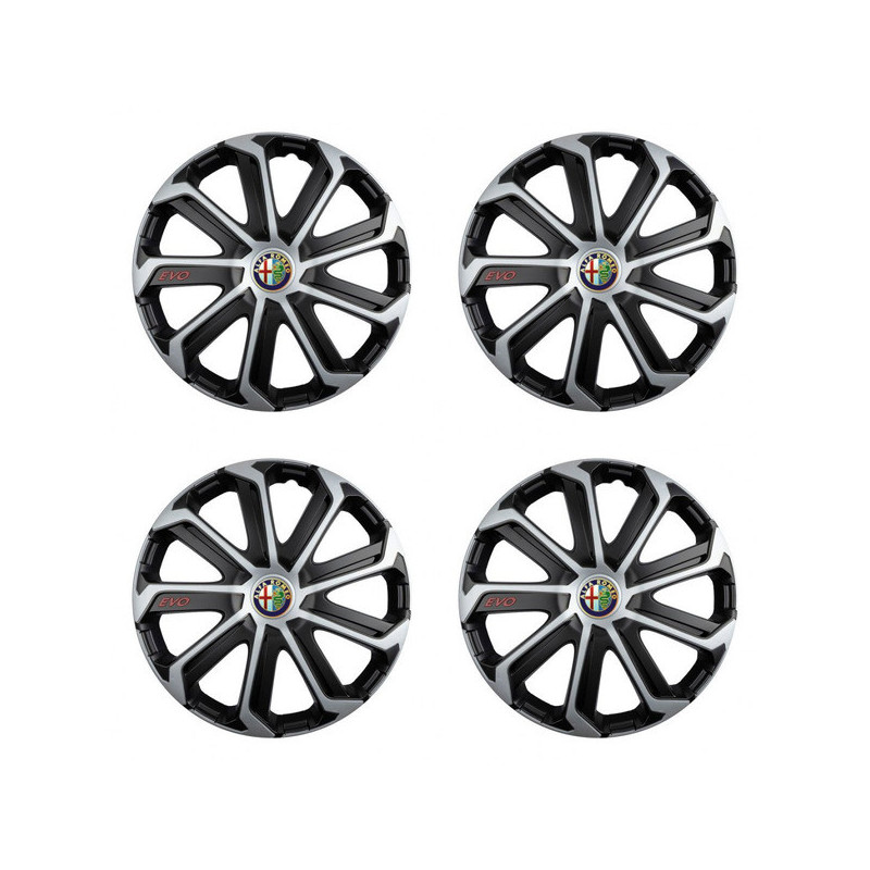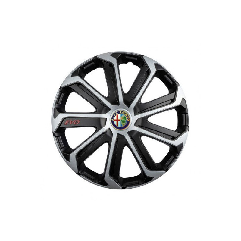 Puklice 16 Evo black&silver pre Alfa Romeo na ocelové disky. Pre kolesá o veľkosti R16 so živicovými samolepkami Alfa Romeo.Címzett :