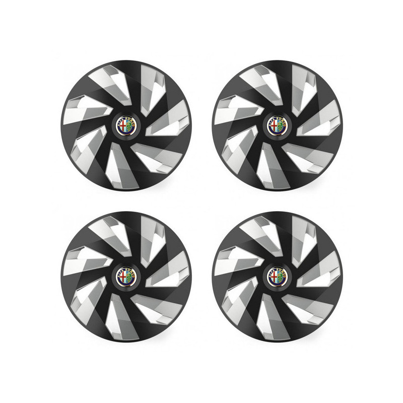Puklice 16 Vector RC black and silver pre Alfa Romeo na ocelové disky. Pre kolesá o veľkosti R16 so živicovými samolepkami Alfa Romeo.Címzett :