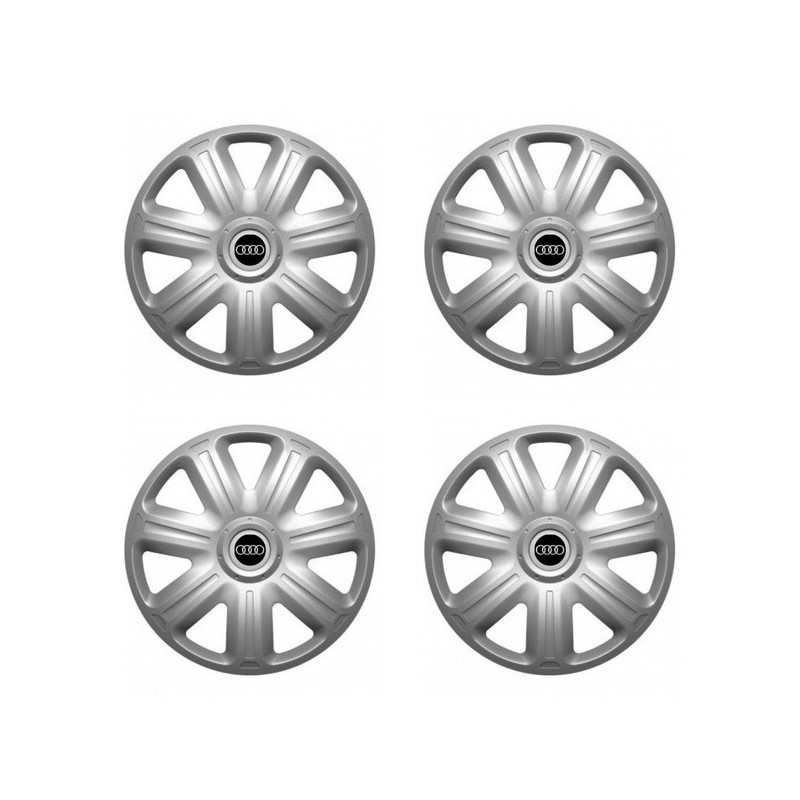 Puklice 15 COMFORT pre Audi na ocelové disky. Pre kolesá o veľkosti R15 so živicovými samolepkami Audi.Címzett :
