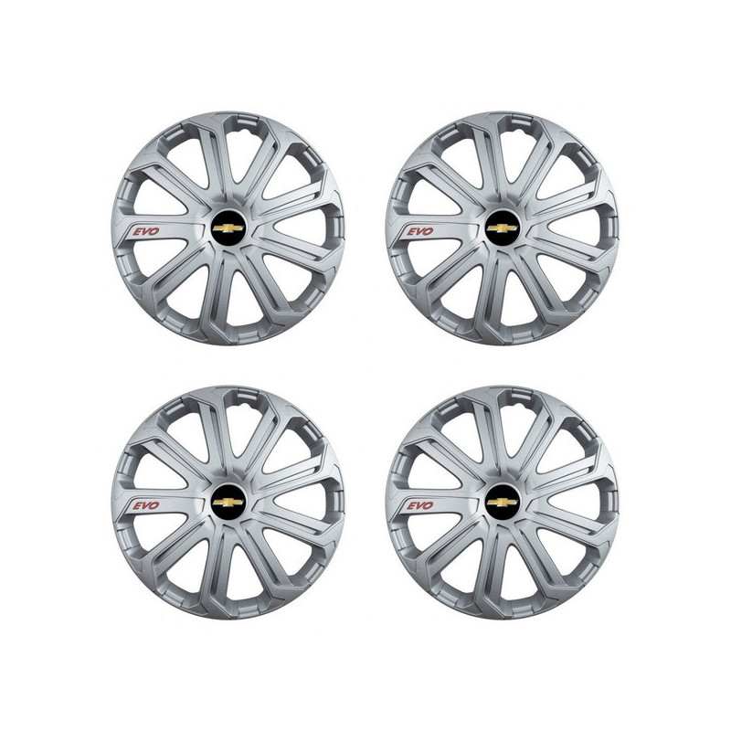 Puklice 14 Evo silver pre Chevrolet na ocelové disky. Pre kolesá o veľkosti R14 so živicovými samolepkami Chevrolet.Címzett :