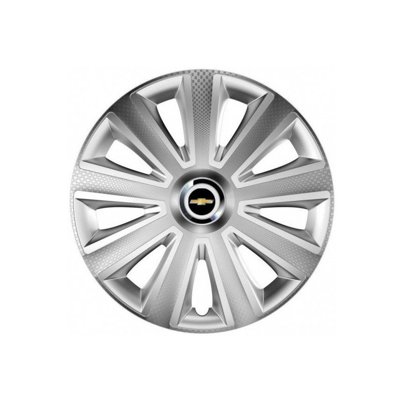 Puklice 15 Aviator carbon silver pre Chevrolet na ocelové disky. Pre kolesá o veľkosti R15 so živicovými samolepkami Chevrolet.Címzett :