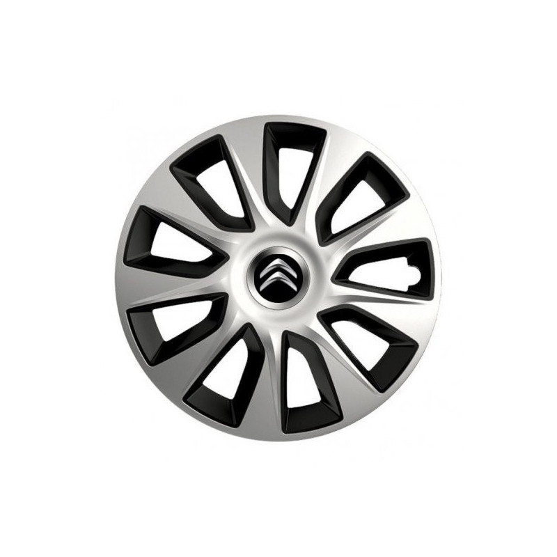Puklice 14 STRATOS double colour pre Citroen na ocelové disky. Pre kolesá o veľkosti R14 so živicovými samolepkami Citroen.Címzett :
