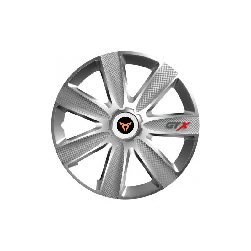 Puklice 15 GTX CARBON silver pre Cupra na ocelové disky. Pre kolesá o veľkosti R15 so živicovými samolepkami Cupra.Címzett :