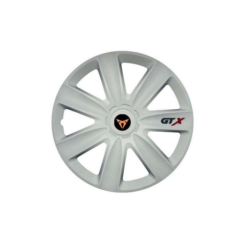 Puklice 15 GTX carbon white pre Cupra na ocelové disky. Pre kolesá o veľkosti R15 so živicovými samolepkami Cupra.Címzett :