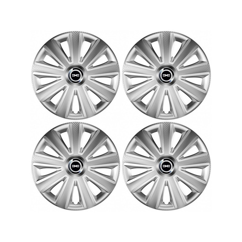 Puklice 14 Aviator carbon RC silver pre Dacia (nové logo) na ocelové disky. Pre kolesá o veľkosti R14 so živicovými samolepkami Dacia (nové logo).Címzett :