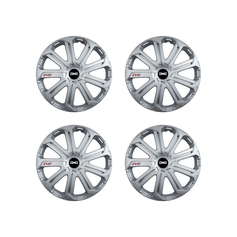 Puklice 15 Evo silver pre Dacia (nové logo) na ocelové disky. Pre kolesá o veľkosti R15 so živicovými samolepkami Dacia (nové logo).Címzett :