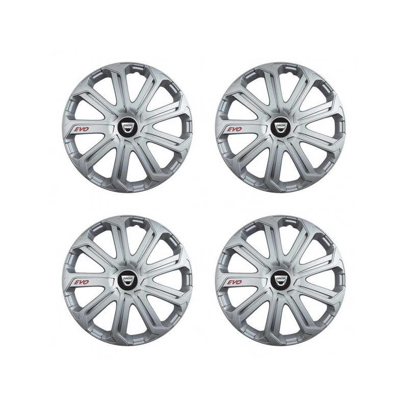 Puklice 14 Evo silver pre Dacia (staršie logo) na ocelové disky. Pre kolesá o veľkosti R14 so živicovými samolepkami Dacia (staršie logo).Címzett :