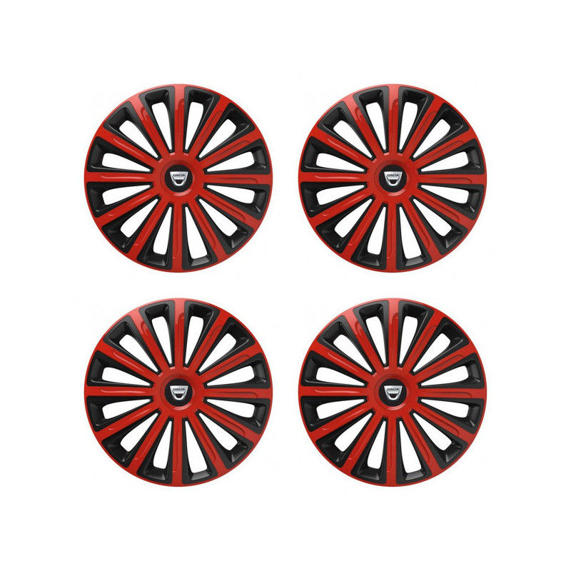 Puklice 15 TREND red and black pre Dacia (staršie logo) na ocelové disky. Pre kolesá o veľkosti R15 so živicovými samolepkami Dacia (staršie logo).Címzett :
