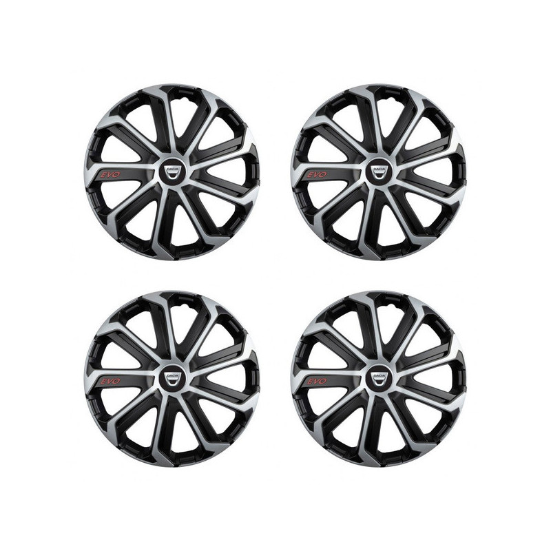 Puklice 16 Evo black&silver pre Dacia (staršie logo) na ocelové disky. Pre kolesá o veľkosti R16 so živicovými samolepkami Dacia (staršie logo).Címzett :