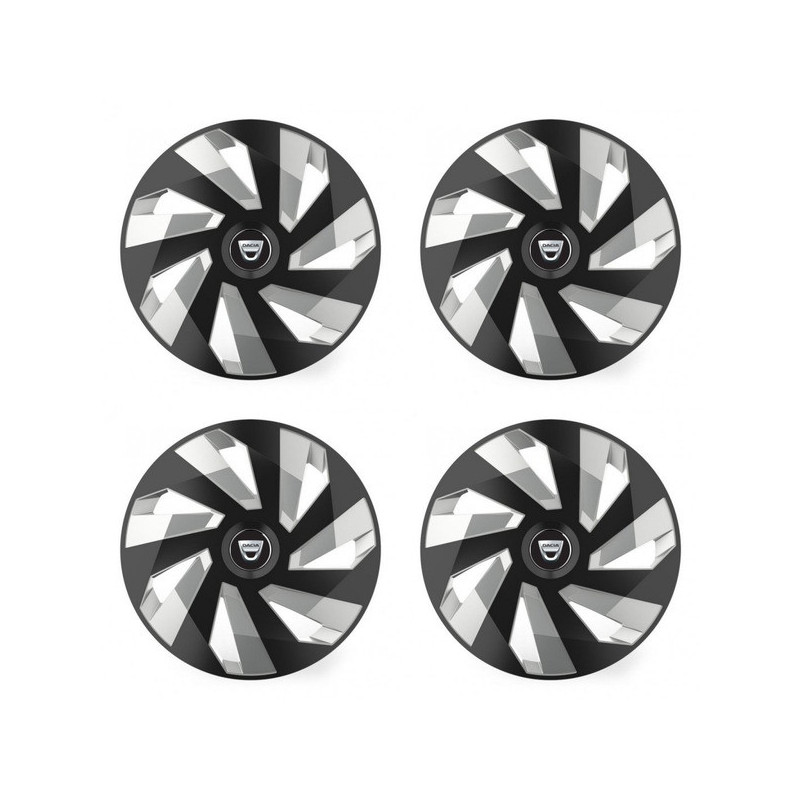 Puklice 16 Vector RC black and silver pre Dacia (staršie logo) na ocelové disky. Pre kolesá o veľkosti R16 so živicovými samolepkami Dacia (staršie logo).Címzett :
