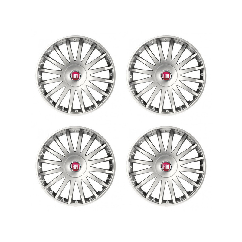Puklice pre Fiat (červené) 15 CRYSTAL silver