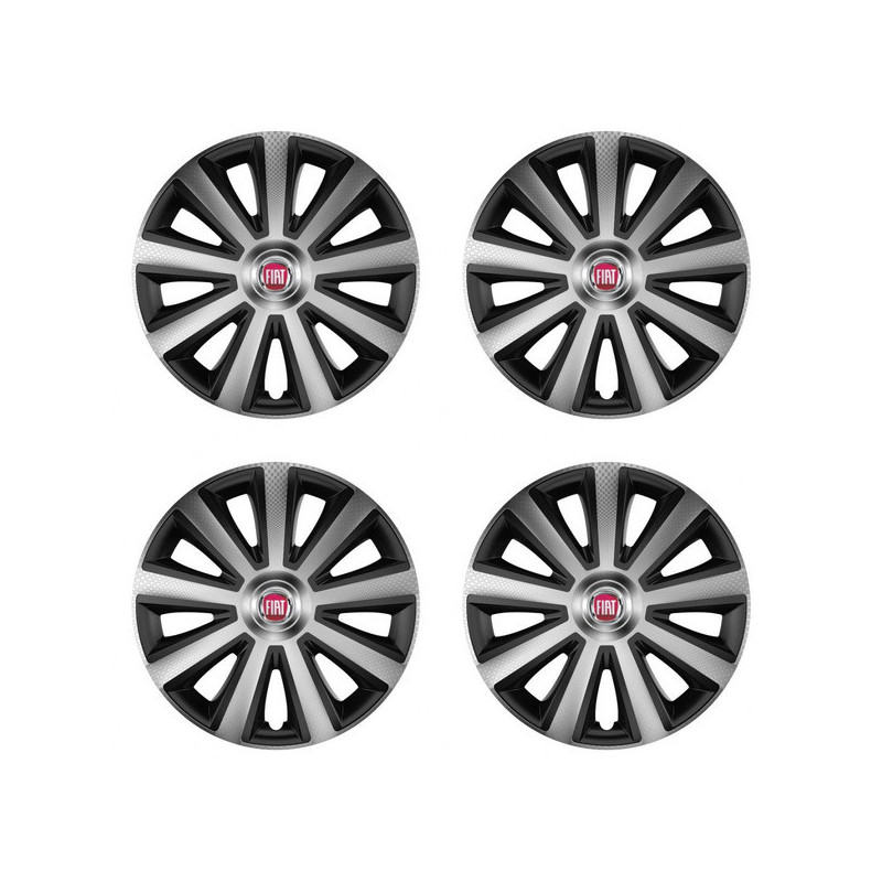 Puklice 16 Aviator carbon silver&black pre Fiat (červené) na ocelové disky. Pre kolesá o veľkosti R16 so živicovými samolepkami Fiat (červené).Címzett :