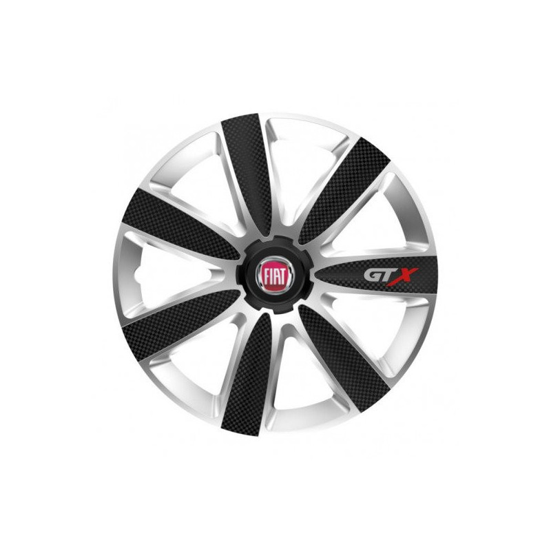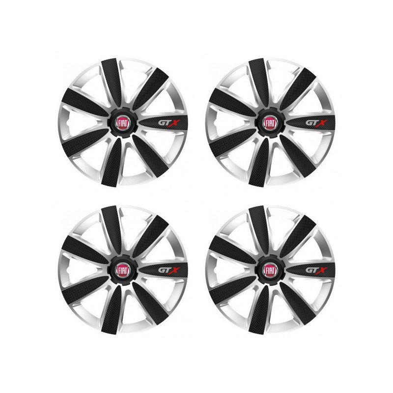 Puklice 16 GTX CARBON silver/black pre Fiat (červené) na ocelové disky. Pre kolesá o veľkosti R16 so živicovými samolepkami Fiat (červené).Címzett :