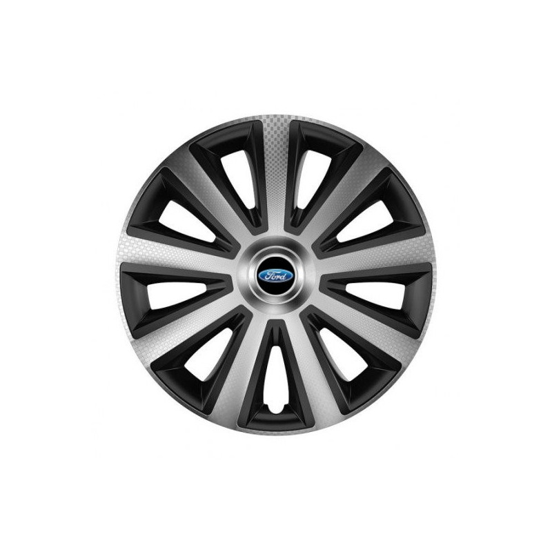 Puklice 15 Aviator carbon silver&black pre Ford na ocelové disky. Pre kolesá o veľkosti R15 so živicovými samolepkami Ford.Címzett :