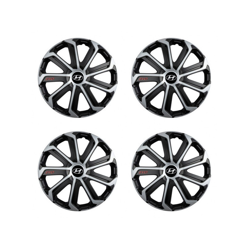 Puklice 15 Evo black&silver pre Hyundai na ocelové disky. Pre kolesá o veľkosti R15 so živicovými samolepkami Hyundai.Címzett :