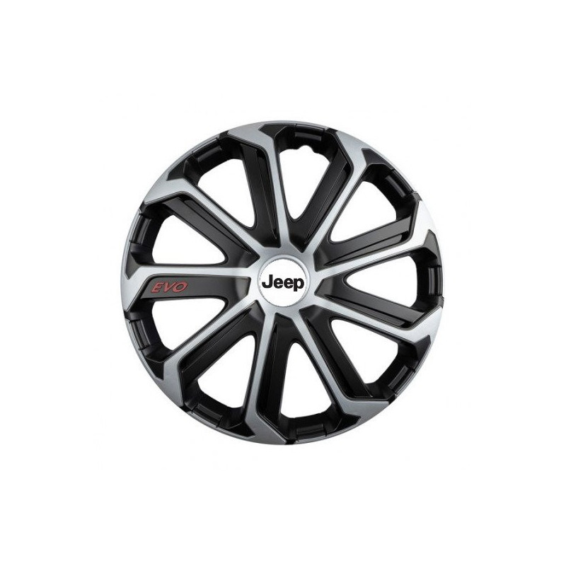 Puklice 14 Evo black&silver pre Jeep na ocelové disky. Pre kolesá o veľkosti R14 so živicovými samolepkami Jeep.Címzett :