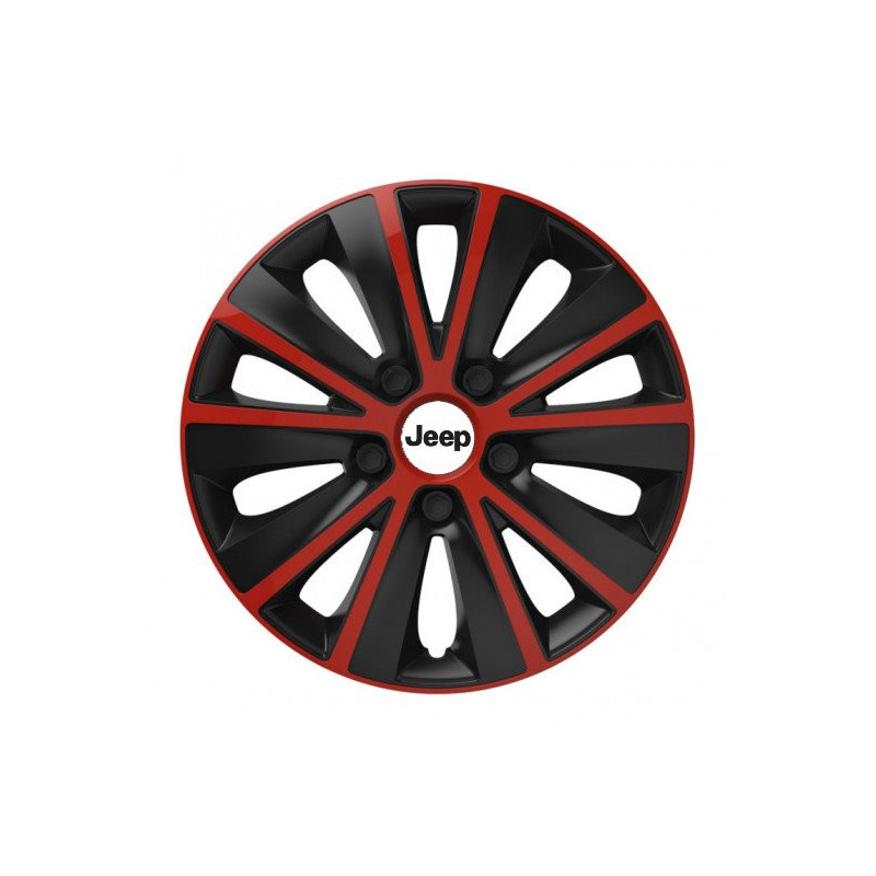 Puklice 15 RAPIDE red and black pre Jeep na ocelové disky. Pre kolesá o veľkosti R15 so živicovými samolepkami Jeep.Címzett :