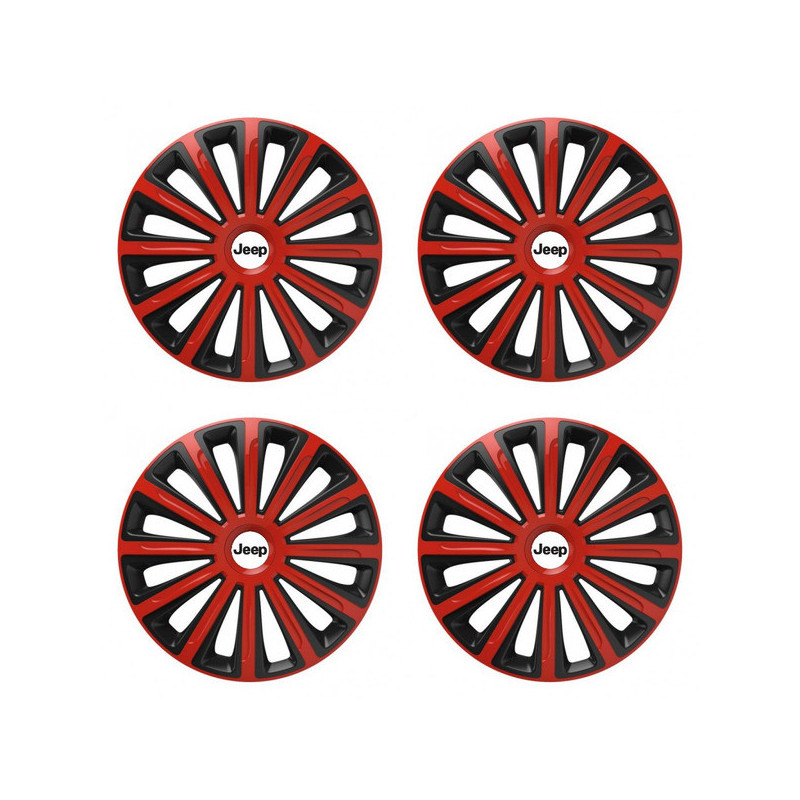 Puklice 15 TREND red and black pre Jeep na ocelové disky. Pre kolesá o veľkosti R15 so živicovými samolepkami Jeep.Címzett :