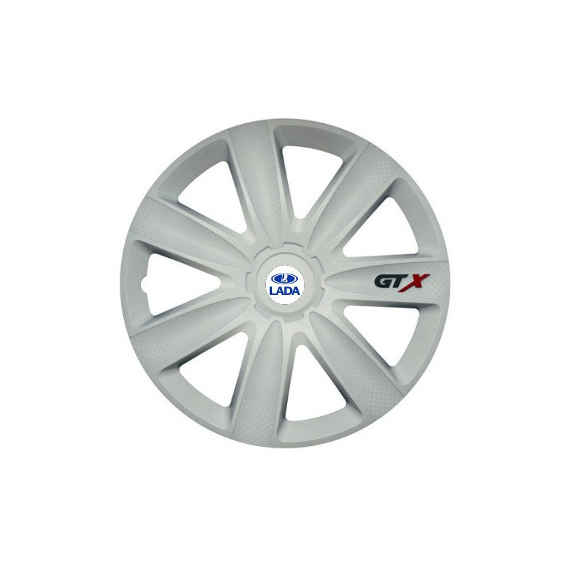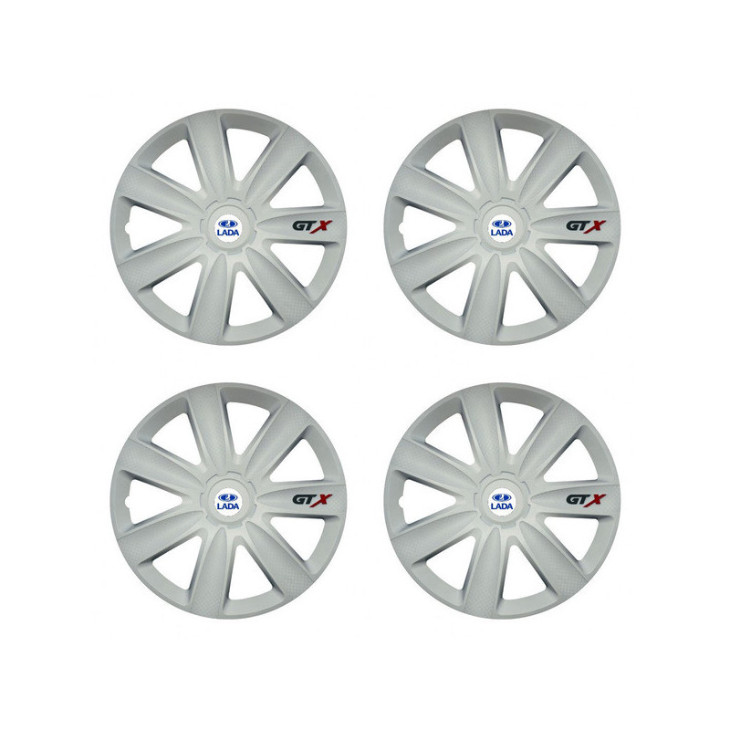 Puklice 14 GTX carbon white pre Lada na ocelové disky. Pre kolesá o veľkosti R14 so živicovými samolepkami Lada.Címzett :