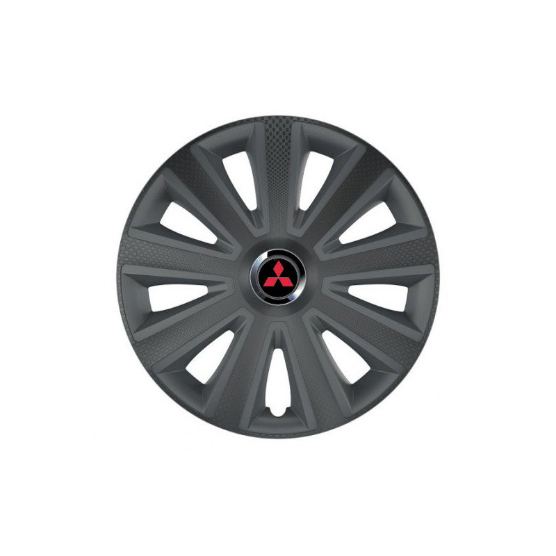 Puklice 15 Aviator carbon grafite pre Mitsubishi (červené) na ocelové disky. Pre kolesá o veľkosti R15 so živicovými samolepkami Mitsubishi (červené).Címzett :