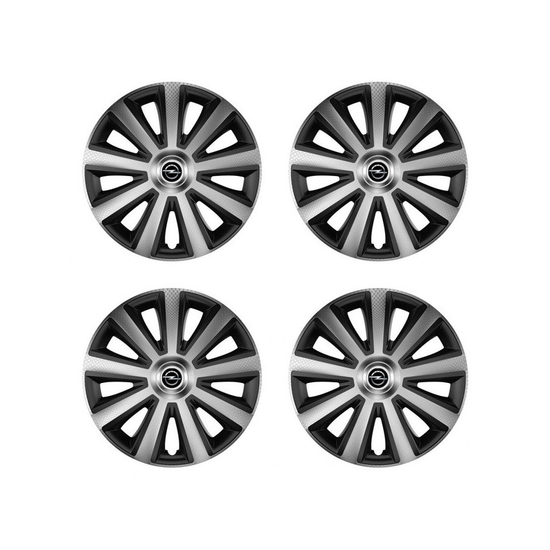 Puklice 15 Aviator carbon silver&black pre Opel na ocelové disky. Pre kolesá o veľkosti R15 so živicovými samolepkami Opel.Címzett :